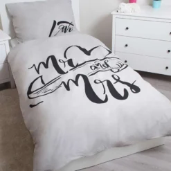Mr & Mrs – Dekbedovertrek – Eenpersoons – 140 X 200 Cm – Grijs
