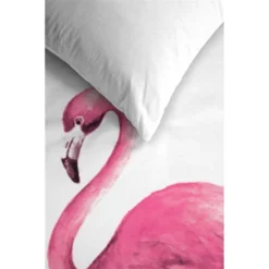 Dekbedovertrek Janson van Ambiante heeft een opdruk van grote roze flamingo. De achtergrond is wit en daarom steekt het roze goed af. Met dit dekbedovertrek creëer je moeiteloos een zomerse sfeer in de slaapkamer. Dit dekbedovertrek is gemaakt van 100% katoen en voelt fijn en zacht aan. Het dekbedovertrek heeft over de gehele breedte aan beide zijden een dubbele instopstrook waardoor het dekbedovertrek gemakkelijk onder het matras gestopt kan worden en koude voeten worden voorkomen. Het dekbedovertrek heeft aan de voor- en achterzijde hetzelfde dessin. Het overtrek kan gewassen worden tot 60 graden, is geschikt voor de wasdroger en kan gestreken worden. Dankzij de hoogwaardige kwaliteit blijft dit overtrek ook na het wassen mooi van vorm en kleur. Met bijpassende kussenslopen.