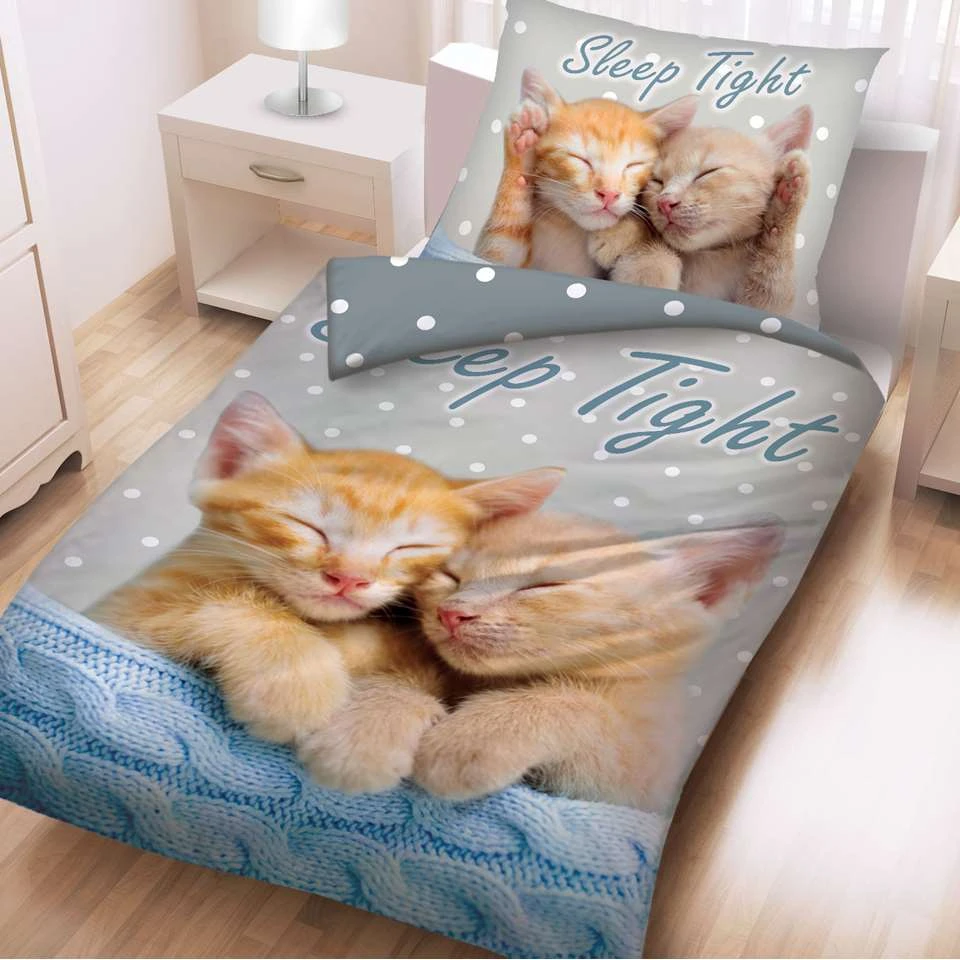 Animal Pictures Dekbedovertrek, Sleep. Het is heerlijk slapen onder dit katoenen dekbedovertrek met een lieve afbeeldingen van twee rode kittens. Een lief plaatje, wat een echte aanwinst is voor de slaapkamer van een dierenliefhebber. De overtrek is dubbelzijdig bedrukt en heeft een extra groot kussensloop. Een fantastisch cadeau voor een verjaardag of de feestdagen.