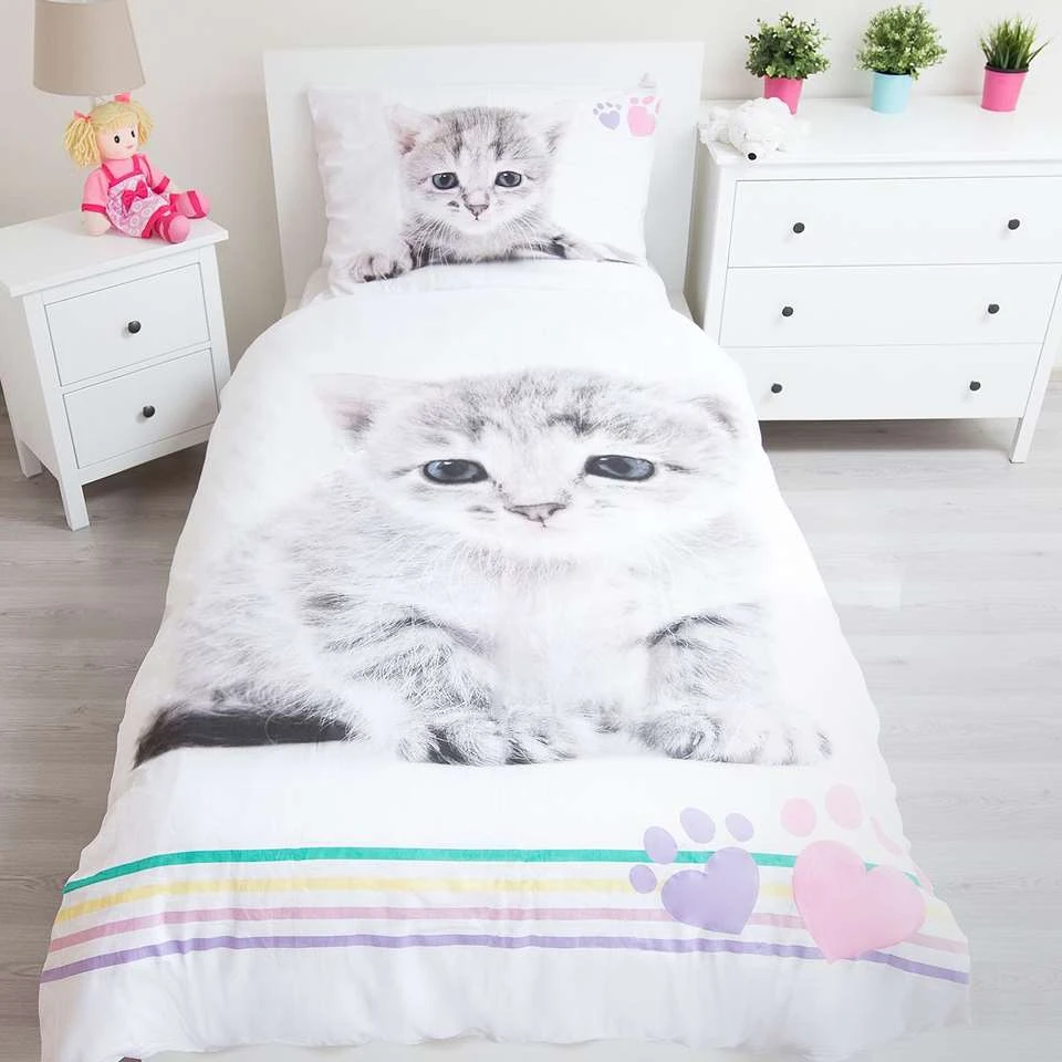 Animal Pictures Dekbedovertrek, Kitten. Schattig eenpersoons katoenen dekbedovertrek. Deze kitten kijkt jou zo lief aan! Daar smelt je helemaal bij weg. Slaap gerust onder dit super leuke kitten dekbedovertrek. Dit dekbedovertrek valt leuk te combineren met andere producten!