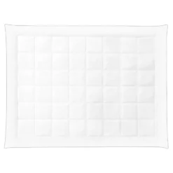 Wit dekbed van huid-vriendelijk Japara katoen met grijze rand. Dit dekbed is bijzonder temperatuur regulerend en heeft uitstekende hygiënische en isolerende eigenschappen. Dankzij de extreem lichte vulling ligt het model bijzonder zacht op de huid. Daarnaast heeft de deken een slijtvaste, onderhoudsvriendelijke hoes van zijdezacht Japara-katoen. Het grote geruite quiltwerk zorgt voor volume en beperkt verschuiven van de dekbedvulling en zorgt zo voor een gelijkmatige warmteverdeling. Het lichtgewicht dekbed is omzoomd met smalle, grijze satijnen bies die het textiel visueel upgrade.