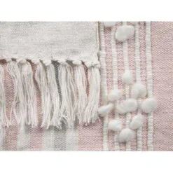 Plaid in zachtroze. Dit handgeweven, zachte plaid is perfect om te knuffelen en mee te ontspannen. Het zorgt voor gezellige momenten op de bank of op het terras en past heel goed bij alle decoratiestijlen. Het is decoratief, veelzijdig en altijd een leuk cadeau-idee.