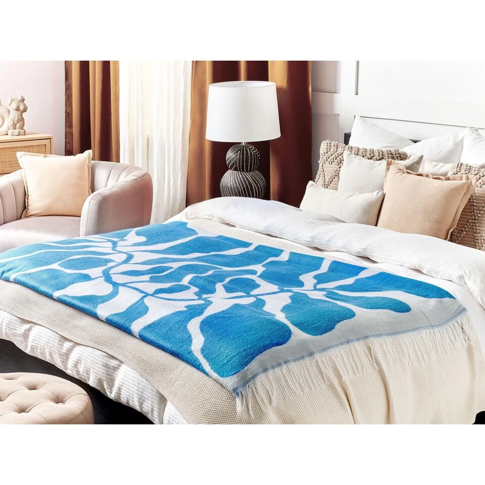 Rechthoekig deken met franjes en bloemenmotief. Verrijk je woonkamer met deze rechthoekige deken, gemaakt van acryl en polyester. Deze mix van materialen maakt het deken zeer licht, slijtvast en warm – een perfecte deken om jezelf in te wikkelen tijdens koude avonden. Het deken is aan beide kanten versierd met een bloemmotief, een detail dat door al je gasten gewaardeerd zal worden.