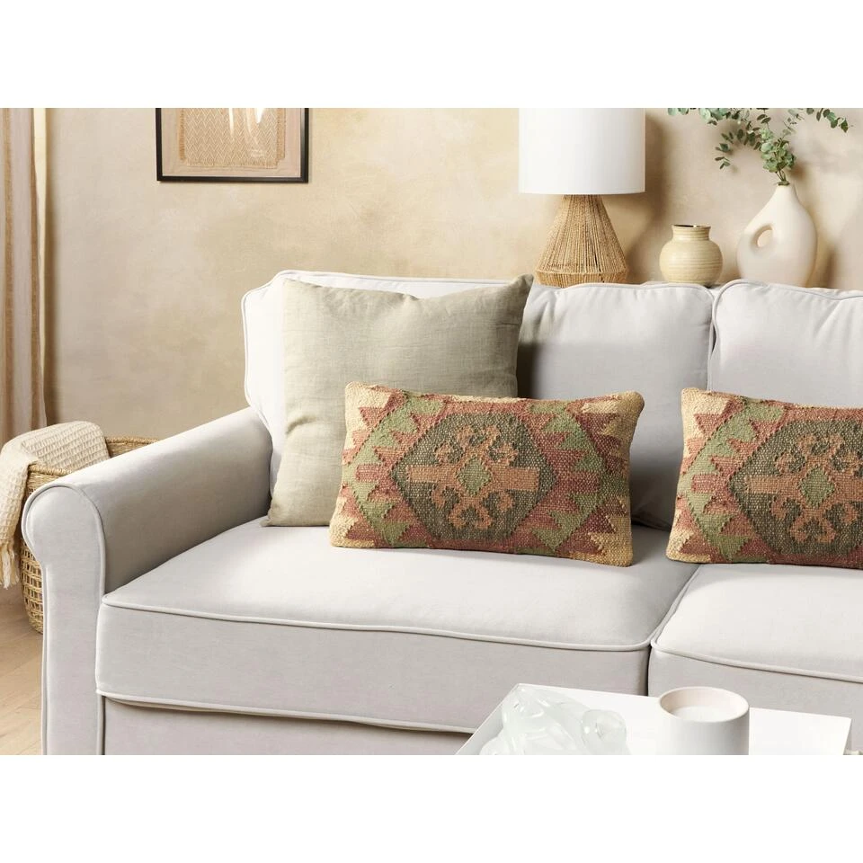 Handgemaakte decoratieve kussens met geometrisch patroon. Maak het ontwerp van je interieur compleet met deze prachtige kussens. Ze zijn een echte decoratie dankzij de oosterse geometrische patronen die elke ruimte nog mooier zullen maken. De hoge kwaliteit look is gegarandeerd dankzij het gebruik van een traditionele geweven techniek genaamd Panja die hoge precisie vereist. Leg de kussens op je bank of op bed en geniet voor vele jaren van zijn schoonheid.