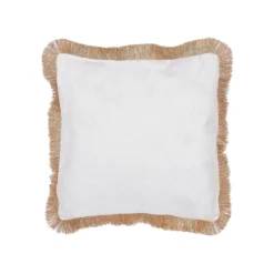 Boho sierkussen met franjes. Dit kussen is een combinatie van traditionele en boho-vormen. Het heeft een klassieke vierkante vorm met decoratieve kwastjes aan de zijkanten en een opvallende boho-print. Door zijn beige en witte kleur past hij perfect in verschillende interieurs. Bovendien is het dankzij de gebruikte materialen en dikke vulling zacht en comfortabel in gebruik. Versier je bed of bank met dit stijlvolle stuk.
