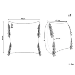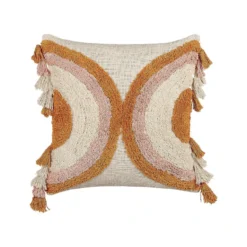 Decoratieve sierkussens met geometrisch patroon en kwastjes. Voeg deze sierkussenset toe aan je woonkamerinrichting om het een gezellige en gastvrije uitstraling te geven. Het geometrische regenboog-geïnspireerde patroon met unieke textuur en kwastjes maken het tot een opvallende decoratie. Elk kussen heeft een katoenen hoes, zachte vulling en een ritssluiting.