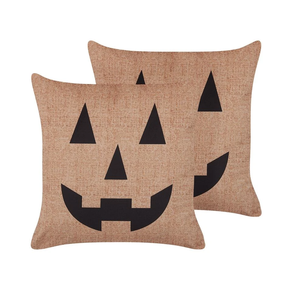 Sierkussens met Halloween pompoen motief. Maak je huis klaar voor de herfst met deze sierkussens. De kussens hebben een patroon dat lijkt op een uitgeholde pompoen lantaarn. Zo hoef je zelf geen rommel te maken om toch een gezellig Halloween sfeer te creëren. De kussens zijn gemaakt van heerlijk zacht fluweel dat super makkelijk schoon te maken is. Kussenhoezen met ritssluiting.
