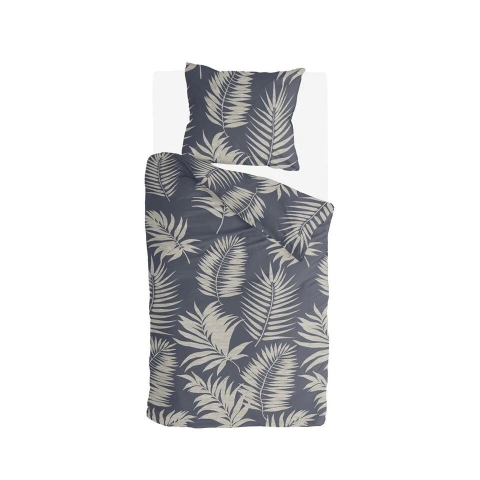 Byrklund Dekbedovertrek Pretty Palm – Eenpersoons 140×220 – 100% katoen – Grijs / Blauw