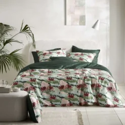 De Witte Lietaer Dekbedovertrek, Koi Tidepool. Prachtig satijn katoenen dekbedovertrek in hotelmaat met een hoge weefdichtheid. Het bedlinnen is een lichtgewicht katoen-satijn dat ultra comfortabel aanvoelt door de satijnbinding, het gekamd katoen en de extra zijdeglans. De hoge weefdichtheid zorgt er tevens voor dat de stof glad aanvoelt. Het dekbedovertrek en de kussenslopen zijn dubbelzijdig en dus omkeerbaar. Op de voorkant staat een kleurrijke afbeelding van waterlelies en de achterzijde heeft een effen kleur. Door de extra wijde flessenhals is de hoes makkelijk over het dekbed te trekken. De Witte Lietaer staat bekend om hun kwaliteitsproducten en rijke geschiedenis. Kortom, met een product van De Witte Lietaer koopt u een voortreffelijke ervaring.