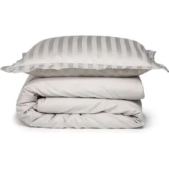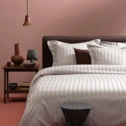 Prachtige effen dekbedovertrekken van Nederlands top fabrikant Damai. Leverbaar in verscheidene kleuren met een subtiel geweven jaquard streep, een weldaad om onder te slapen. Heerlijk zacht satijn gemaakt van het beste katoen. Bij satijn is de katoen met een speciale weeftechniek verwerkt waarbij de garens heel dicht op elkaar geweven worden. Dit maakt de stof heel soepel. Kenmerkend is de glans aan de bovenzijde die meteen ook een luxe uitstraling geeft.