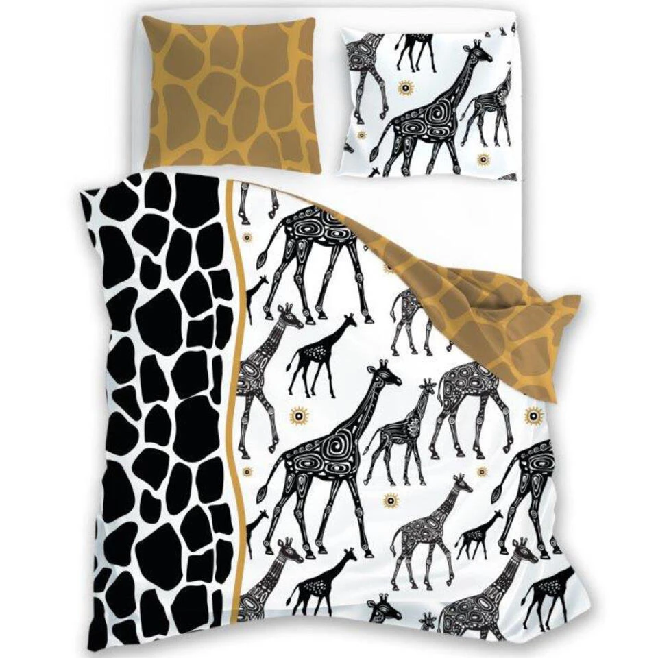 Faro Dekbedovertrek, Safari. Stoer katoenen dekbedovertrek met een safari-thema. Dit fijne dekbedovertrek is bedrukt met een gave print van giraffen. Zowel de overtrek als het (extra grote) kussen zijn dubbelzijdig bedrukt, wat een leuk effect geeft bij het opmaken van het bed. Een echte blikvanger voor elke slaapkamer! Een waanzinnig leuk cadeau-idee voor een safari-liefhebber voor een verjaardag of de feestdagen.