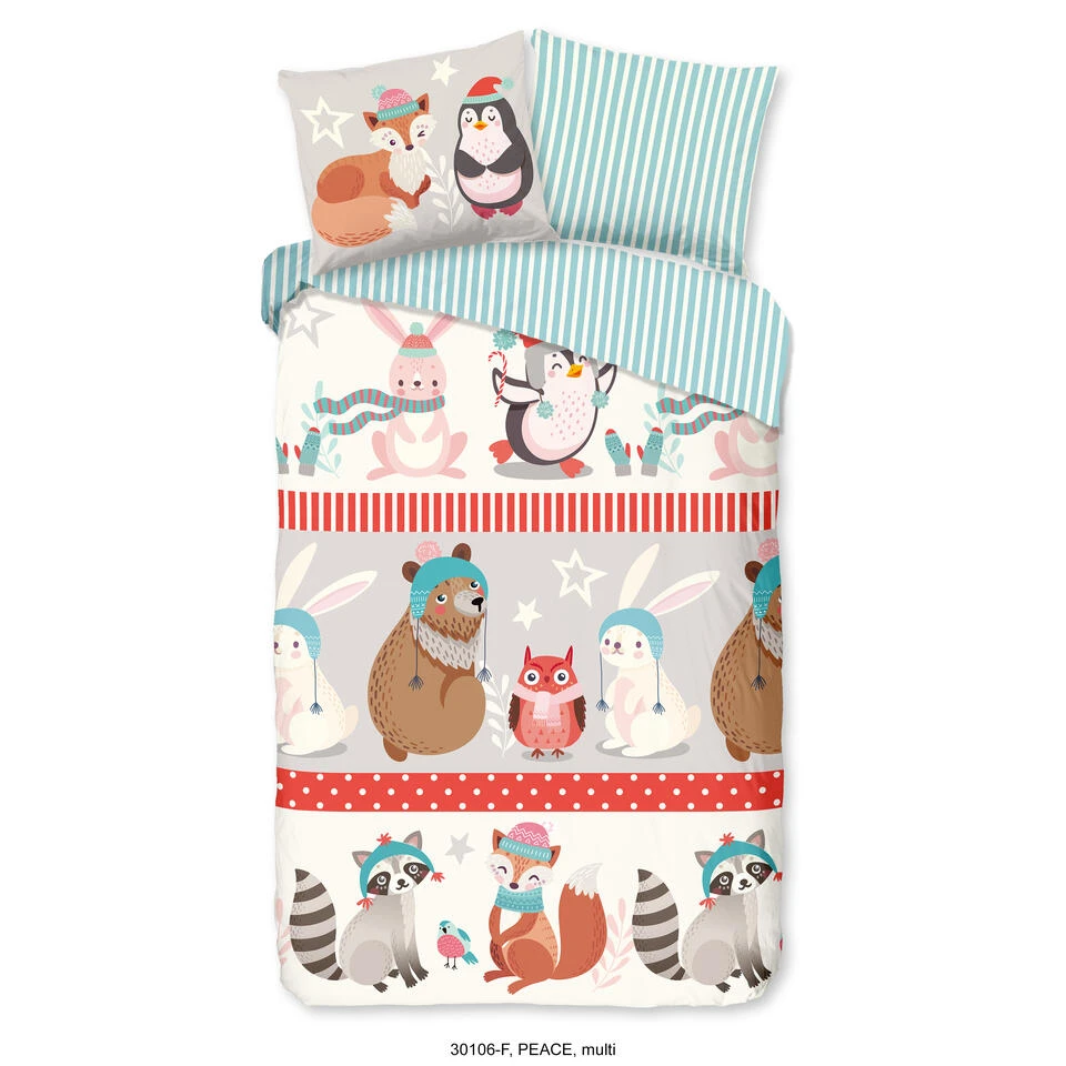 Dekbedovertrek “Peace” van Good Morning met dieren, in de kleur “Multi” is gemaakt van 100% geruwde 100% Cotton/ Flannel. Deze warme, zachte stof is zeer geschikt voor de wintermaanden, ademend en vocht absorberend.