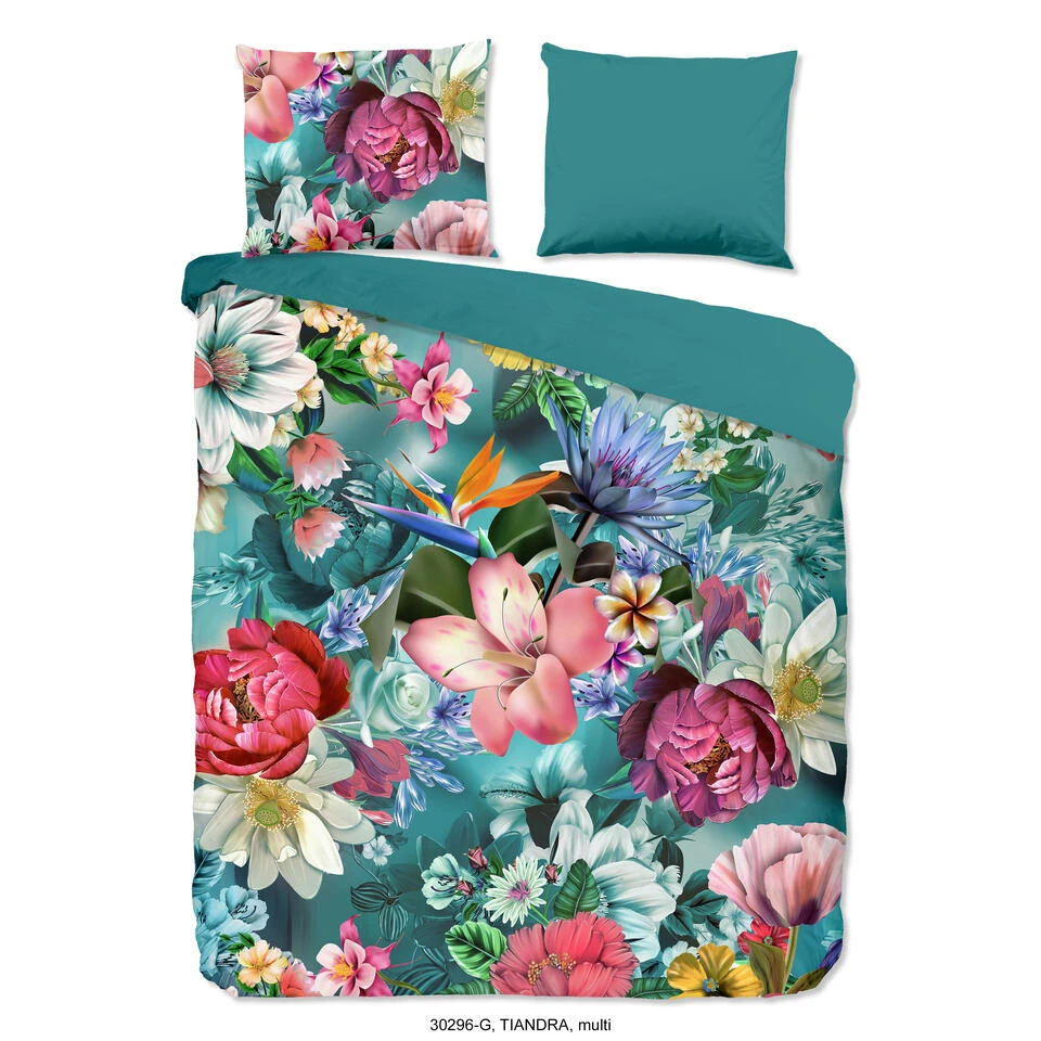 Dekbedovertrek “Tiandra” van Good Morning met bloemen, in de kleur “Petrol” is gemaakt van 100% Cotton. Deze kwaliteit is ademend, vocht absorberend en voelt zacht en soepel aan.
