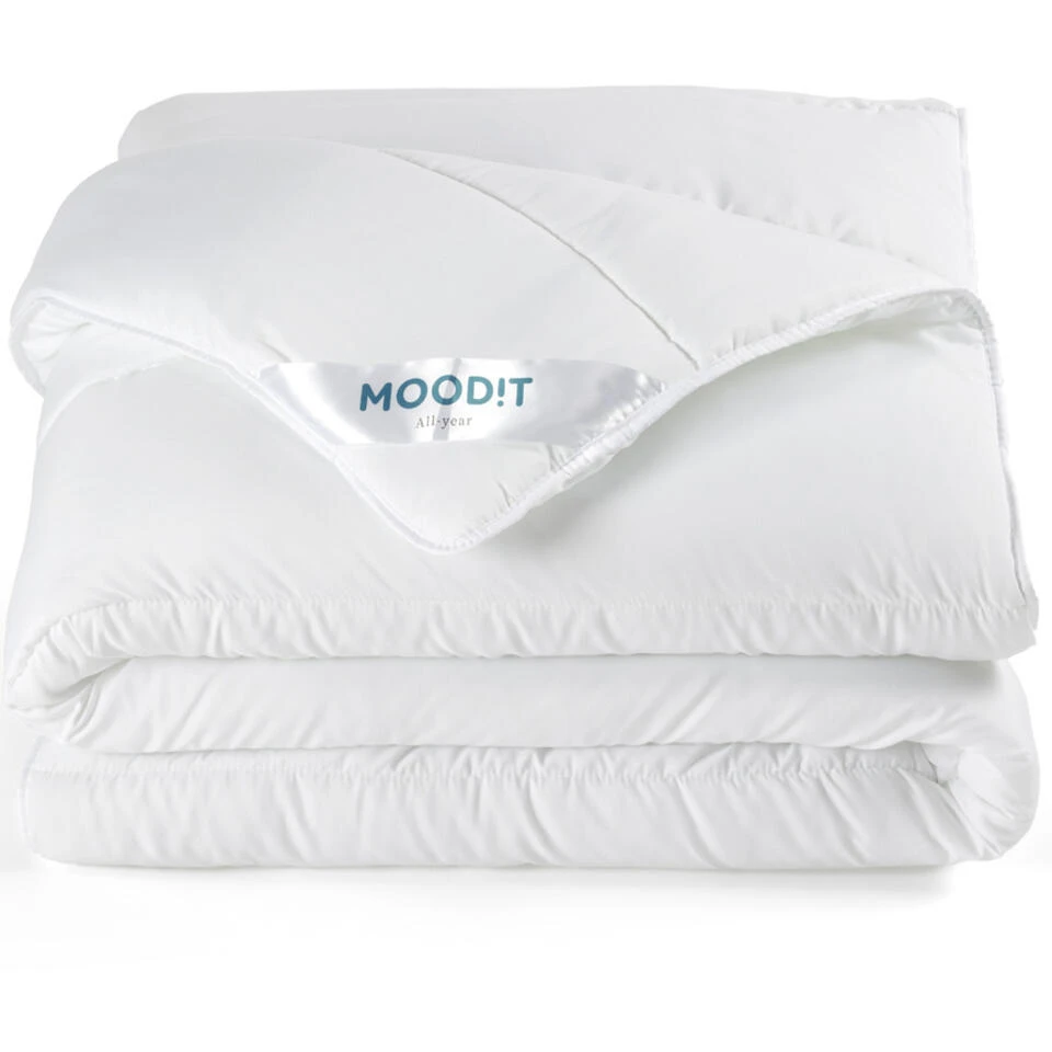 Moodit Dekbed, Winston. Dekbedden uit de Winston collectie van Moodit zorgen voor de ideale nachtrust. Het dekbed geeft uw lichaam de gewenste temperatuur het hele jaar door. De vulling, gemaakt van een polyester holle vezel en de polyester microvezel tijk, zorgen ervoor dat dit dekbed alle seizoenen gebruikt kan worden. Ook leuk om af te stylen met een dekbedovertrek uit de Moodit collectie.