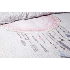 Dit dromerige dekbedovertrek met een dromenvanger is een must have voor in je slaapkamer! Het dekbedovertrek is gemaakt van 100% Katoen-Satijn en heeft dus ook de fijne eigenschappen van katoen. Een katoen-satijnen dekbedovertrek voelt zachter en gladder aan dan een standaard katoenen dekbedovertrek, Dit komt door de satijnweving dat gebruikt wordt het katoen wordt namelijk veel dichter op elkaar geweven dus er worden meer draden hiervoor gebruikt. Hoe hoger de draaddichtheid hoe beter de kwaliteit van het dekbedovertrek! Het straalt luxe maar uit maar het is ook zeer comfortabel.