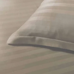 Dit Chique katoen-satijn dekbedovertrek met elegante lengtestrepen is een must have voor in je slaapkamer! Het dekbedovertrek is gemaakt van 100% Katoen-Satijn en heeft dus ook de fijne eigenschappen van katoen. Een katoen-satijnen dekbedovertrek voelt zachter en gladder aan dan een standaard katoenen dekbedovertrek, Dit komt door de satijnweving dat gebruikt wordt het katoen wordt namelijk veel dichter op elkaar geweven dus er worden meer draden hiervoor gebruikt. Hoe hoger de draaddichtheid hoe beter de kwaliteit van het dekbedovertrek! Het straalt luxe maar uit maar het is ook zeer comfortabel.