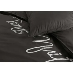 Dit stoere Percale-katoen dekbedovertrek met de tekst “Bonne Nuit” is een aanwinst voor in je slaapkamer! Het is een makkelijk te combineren dekbedovertrek die zeer stijlvol en trendy is. Niet alleen is het trendy maar het is ook heel comfortabel. Het is gemaakt van 100% Percale-katoen dit is het meest luxe katoensoort die er is. Het is een zeer stevige stof maar niet zwaar in gewicht! De stof is glad, een natuurlijk materiaal, met een hogere weefdichtheid en garenfijnheid waardoor het niet snel gaat pillen en blijft daarom lang mooi, dus het is ook nog eens duurzaam! In combinatie met de ademende en vocht absorberende eigenschappen van katoen is dit ideaal voor alle seizoenen het is lekker cool in de zomer maar ook lekker warm in de winter.