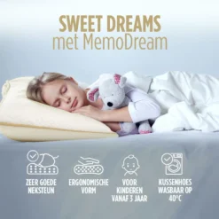 MemoTouch traagschuim dempt perfect alle bewegingen van het kind en sluit naadloos aan op het hoofd en de nek. Ideaal voor een diepe slaap van uw kleintje.
