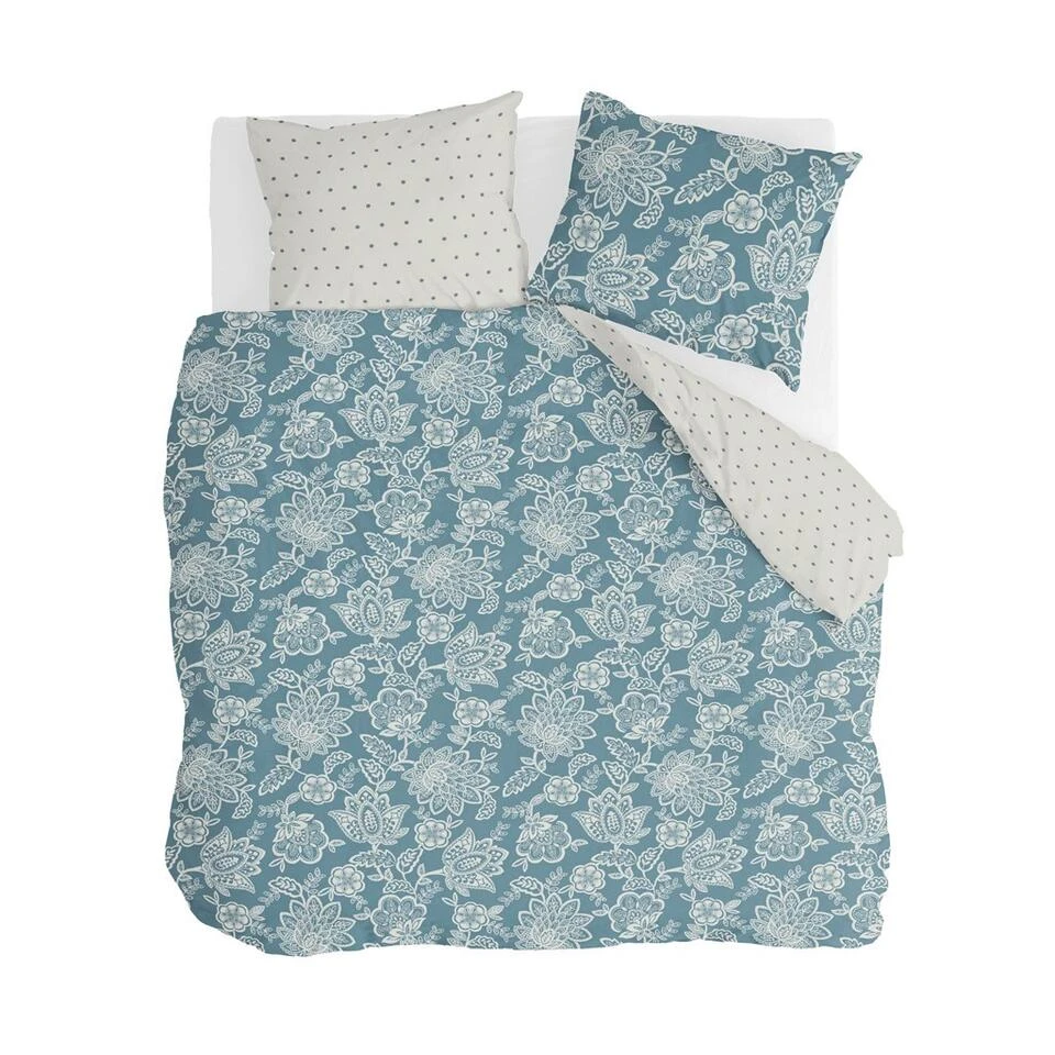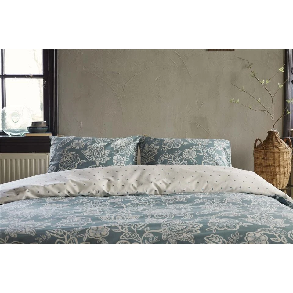 Het dekbedovertrek Country Love heeft aan de voorzijde een Engels bloemenpatroon en aan de achterzijde stipjes op een witte ondergrond. Het is een echte eyecatcher en zorgt voor een romantische sfeer in de slaapkamer. De achterzijde van het overtrek met kleine stipjes geven een speelse look.