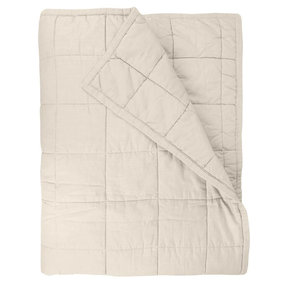 Het luxe plaid Luxury Touch heeft doorgestikte blokken en is licht gevoerd, dit geeft jouw slaapkamer een luxueuze uitstraling. De voorkant is gemaakt van een fijn slub katoen met linnen look waardoor deze een rijke uitstraling krijgt, de achterkant is gemaakt van katoen en dus heerlijk zacht.